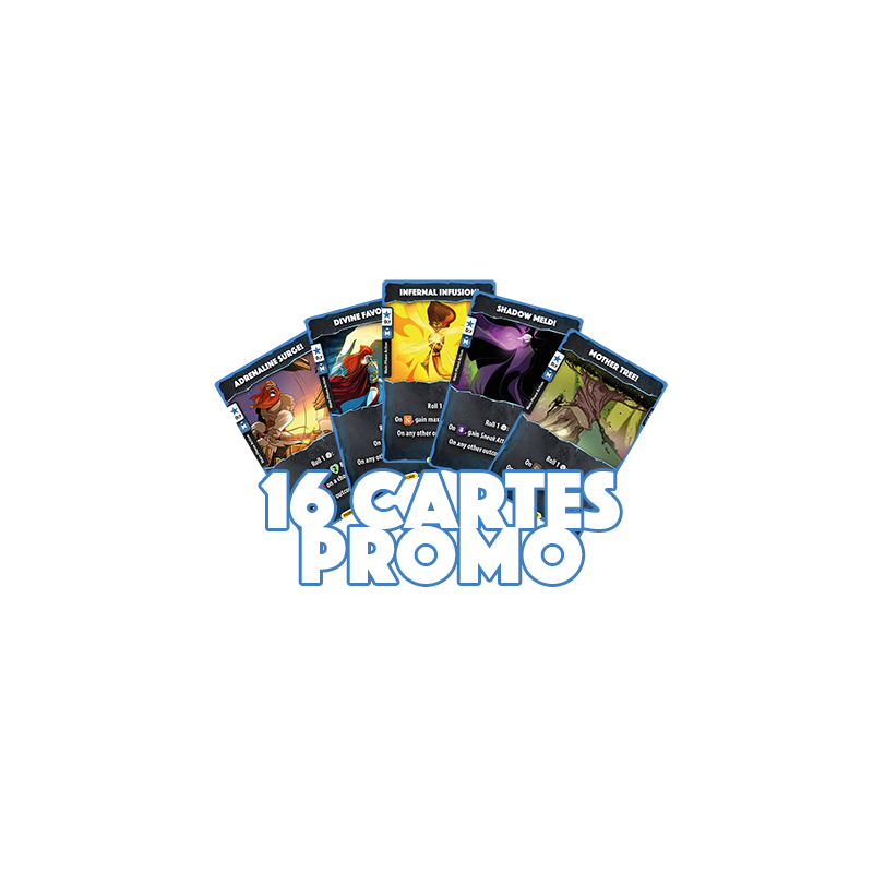 Complétez vos boîtes Dice Throne Saison 1 avec ce pack promotionnel contenant des cartes inédites : 8 cartes de phase principale et 8 cartes de randomisation ! Montée d'adrénaline garantie !