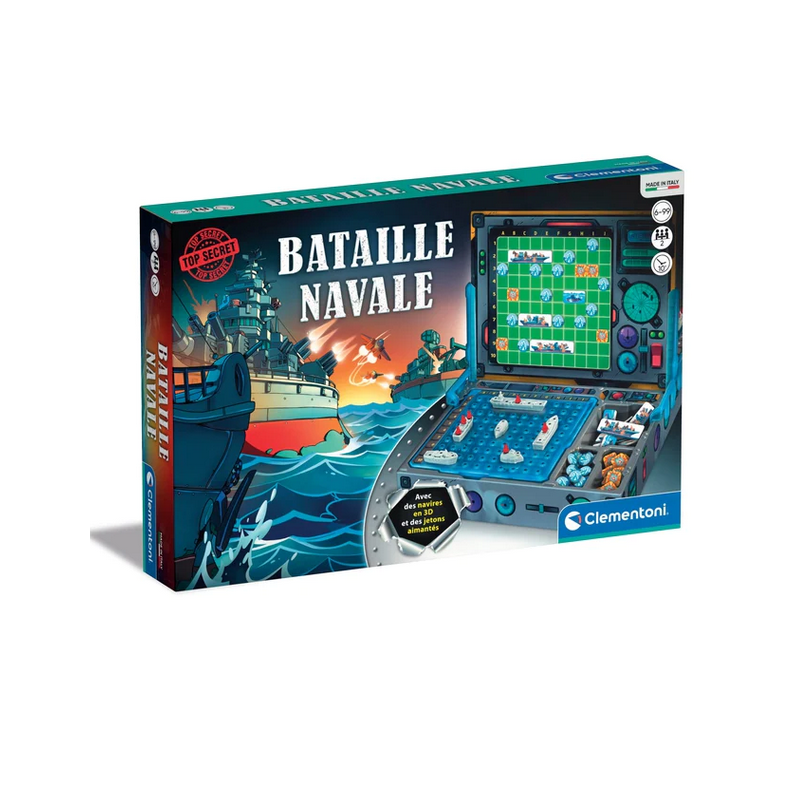 Contient deux plateaux où positionner ses navires, deux écrans magnétiques, les navires de guerre et les jetons magnétiques pour marquer les tirs.