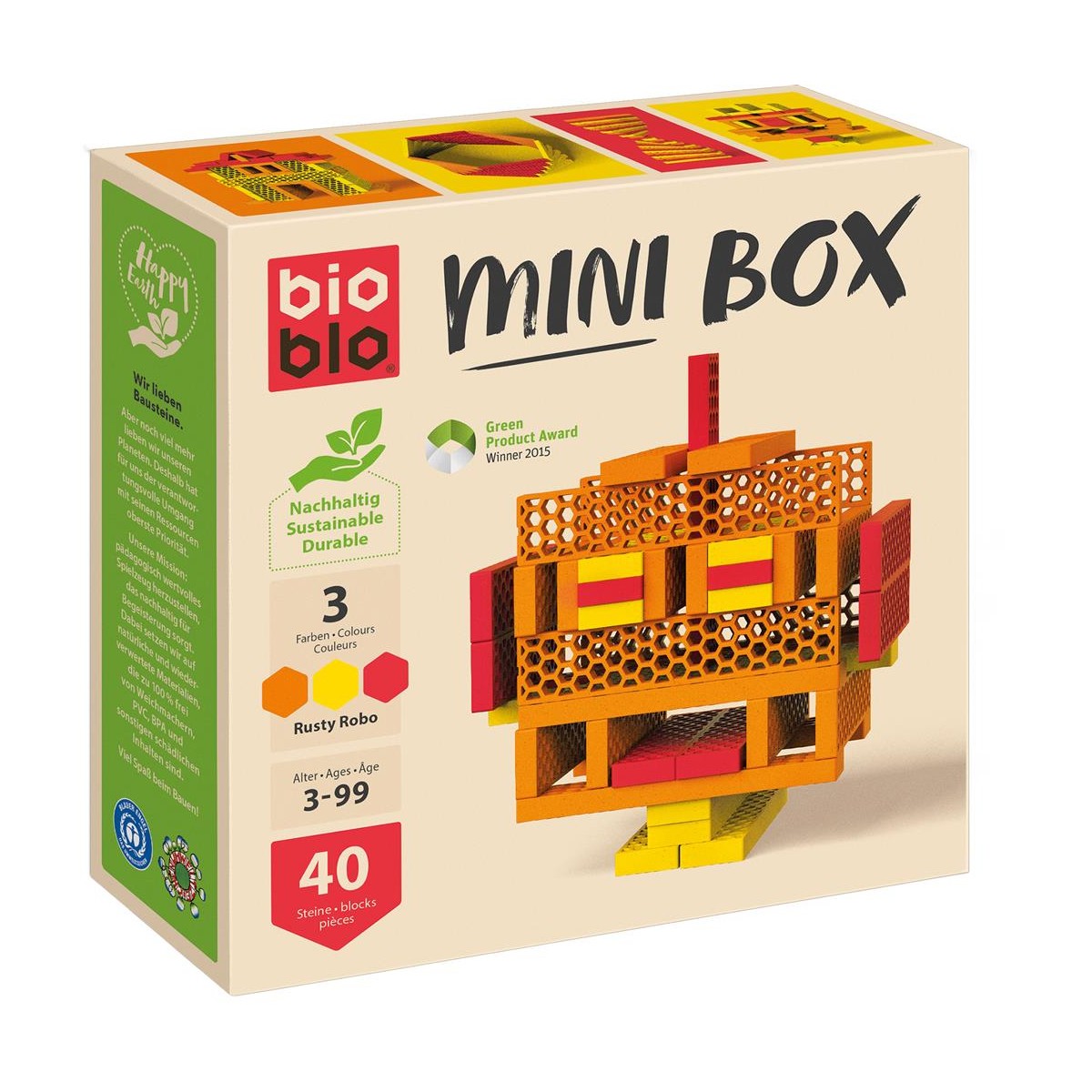 Cette Start Box contient 40 briques de 3 couleurs différentes, pour construire une tête de robot, mais aussi une abeille, des bateaux, etc. Un livret explique les méthodes de construction de base.