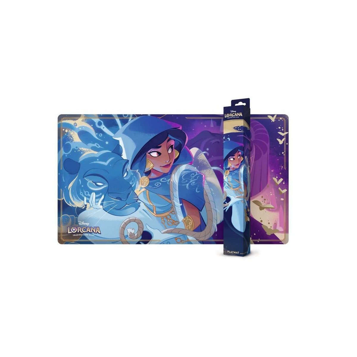 Tapis de jeu Disney Lorcana représentant Jasmine. Dimensions : 61 x 34,3 cm. Dessous antidérapant. Peut également être utilisé comme tapis de souris/de bureau.